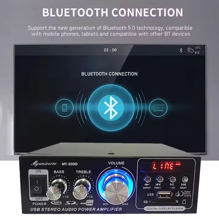 High power amplifier home Bluetooth amplifier, 12V220V small desktop speaker, audio amplifier